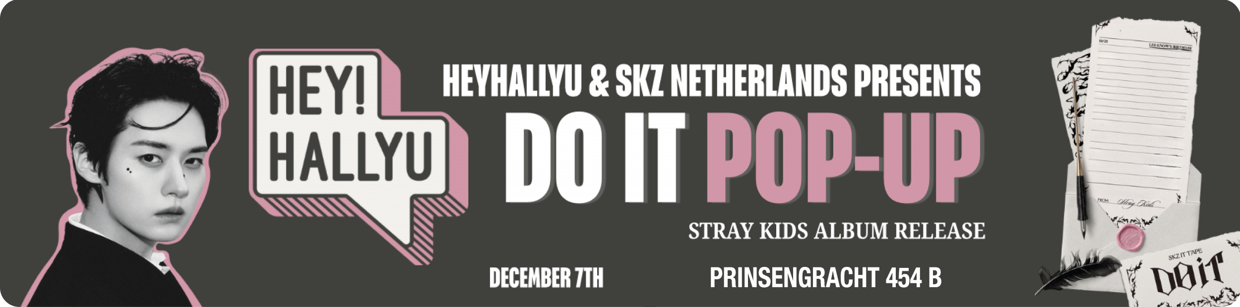 We’re teaming up with SKZ Netherlands for a DO IT Pop-Up and you’re ALL invited!!Get ready for a day full of Stray Kids energy, photo card trading, freebies, raffles, and meeting other STAYs — all in celebration of the new SKZ release, and in our brand new Hey!Hallyu store in Amsterdam!