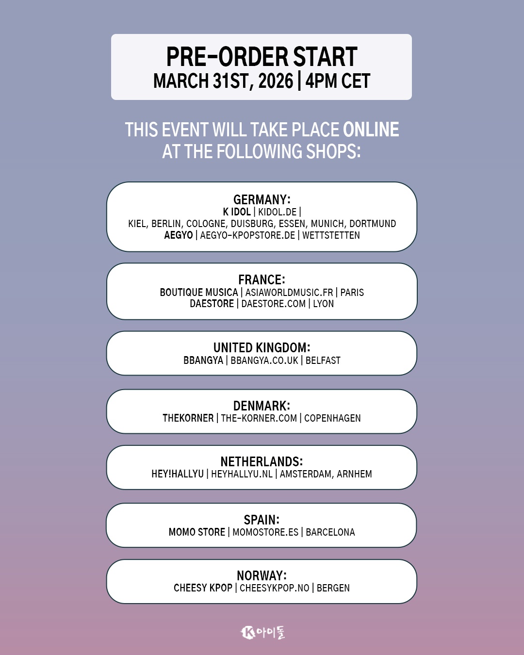 | Pre-order benefit | 1 out of 5 exclusive photocards |