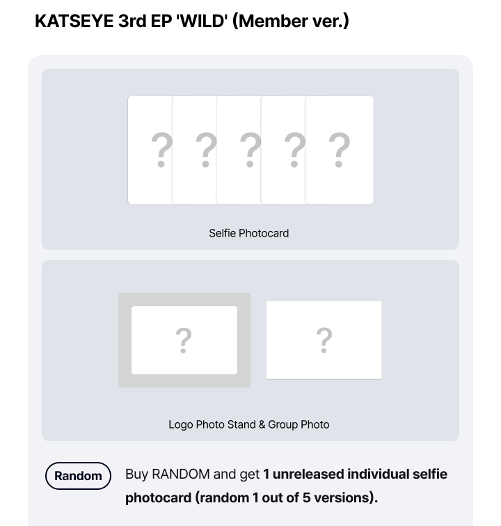 | Pre-order benefit | 1 Photocard (random out of 5) |